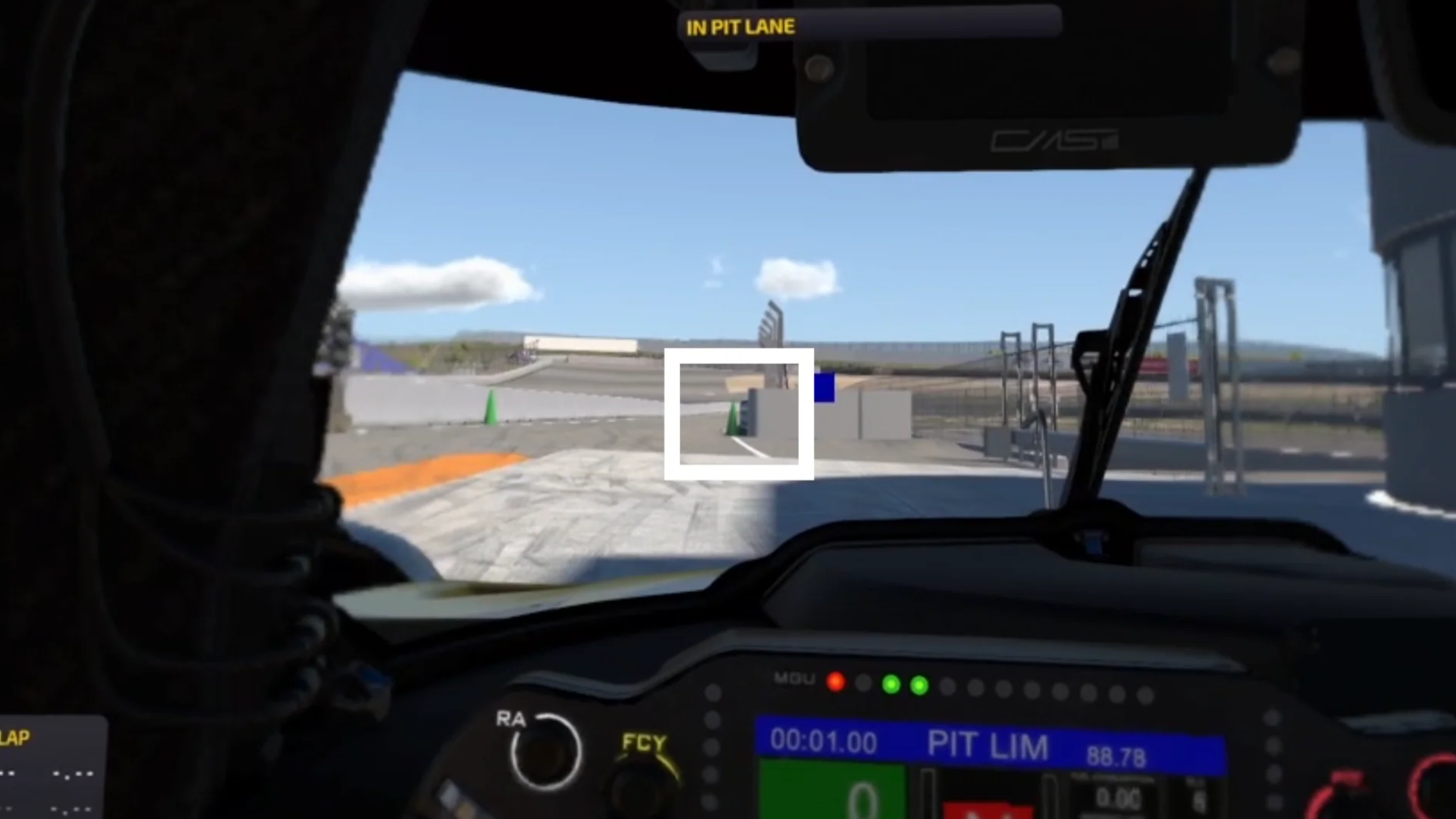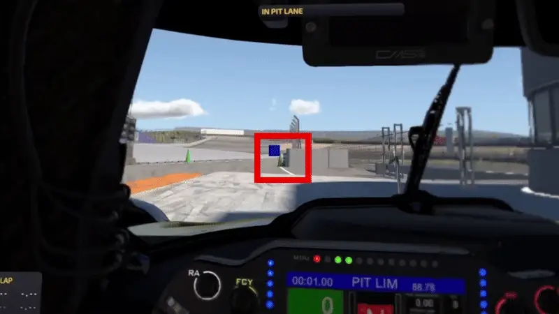 Focus on a Specific Object: Look at a fixed point in the cockpit or on the track. For this example, we’ll focus on the right green cone at the end of the pitlane.