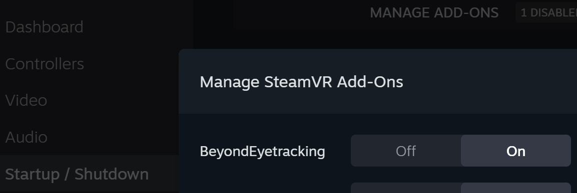 In SteamVR > Startup / Shutdown > Manage Add-Ons, "BeyondEyetracking"